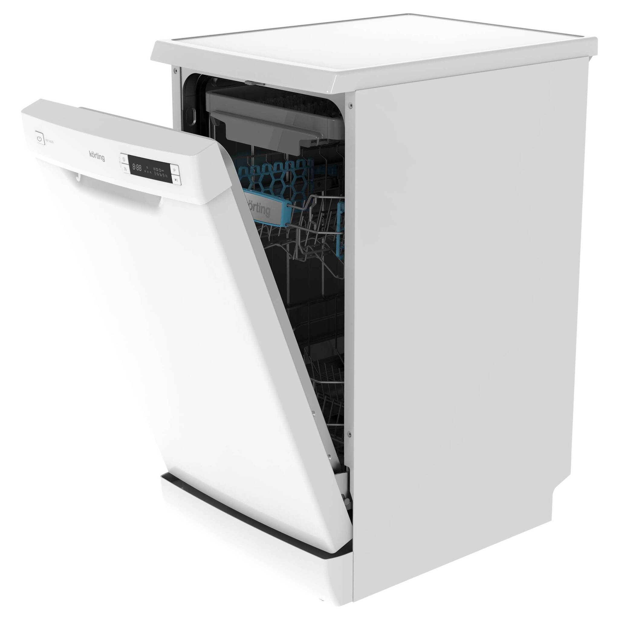 - Новые технологии подачи и распределения потоков воды позволяют улучшить качество мойки, снизить продолжительность программ, а значит сократить энергопотребление до самых современных стандартов. Современные модели Korting способны достигать невероятных результатов при минимальных затратах. Посмотрите показатели потребления для этого прибора в таблице параметров ниже и убедитесь в этом сами!