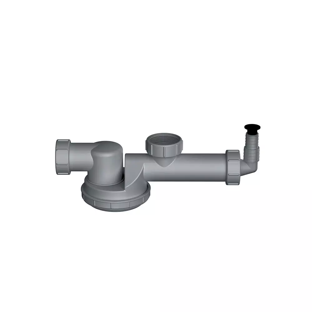• Компактный сифон с гидрозатвором и дополнительным выходом для стиральной машины или посудомоечной машины подходит для одночашевых моек.